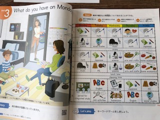 たとえば、「火曜日の3時間目の科目は?」という問いと答えを英語で進めていきました。
