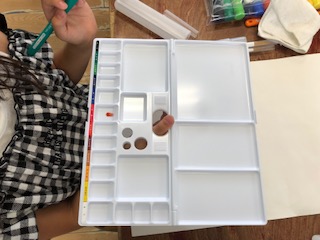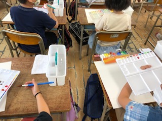 2年生になると絵の具も使うようになります。今日は初めての絵の具体験です。