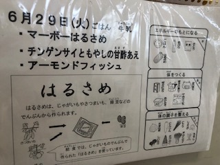 今日の給食には、はるさめが使われています。アーモンドフィッシュもついています。