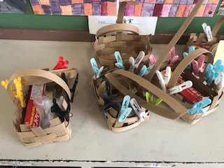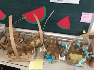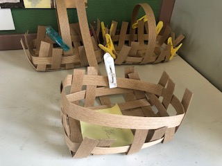 先日、ホームページでお知らせした6年生の製作途中の作品です。組んだ後に接着剤で止めています。洗濯ばさみはその押さえです。