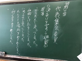 今日の代表委員会では、この前に行ったきまりを守ろう週間についての反省をしました。