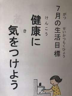 1学期最後の月・7月となりました。教室には生活目標だった掲示されています。