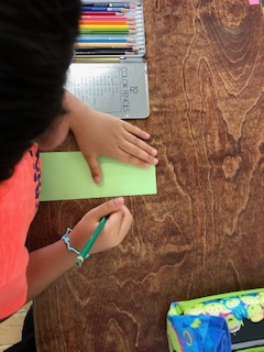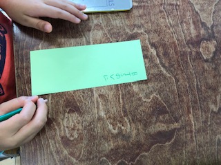 短冊に七夕の願い事を書いています。