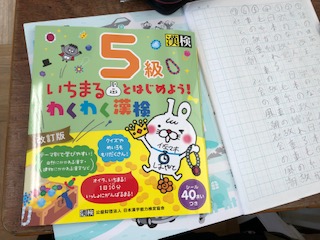 本日、漢字検定用のテキストを学校で購入して配りました。早速、学習を始める子どもたちもいました。受検する検定の級は、一人一人が自分で決めます。(写真は6年生)