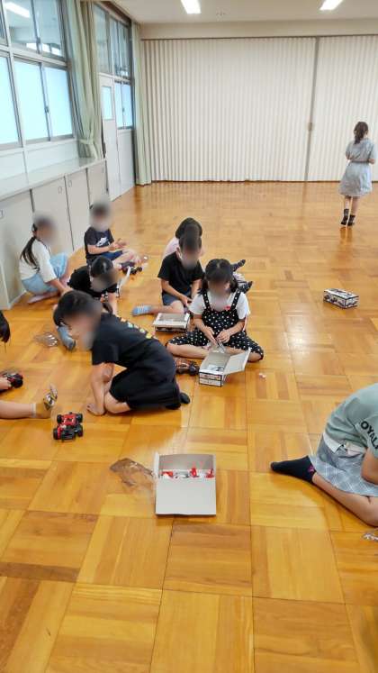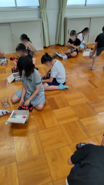 多目的室で電気のはたらきを、車を走らせて確かめていきます。