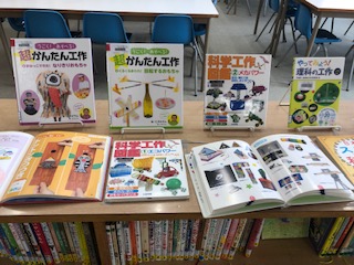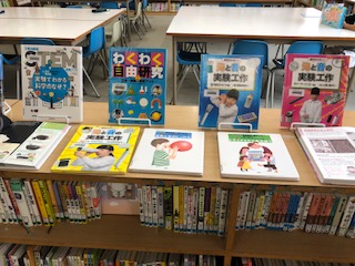まもなく夏休みになります。学校図書館には、自由研究や科学工作などの本が展示されていました。