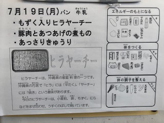 今日で1学期の給食は終了となります。明日の終業式には給食はありません。