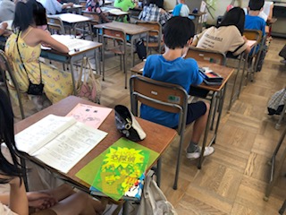5年生は8月の終わりに行く林間学習の説明を聞いていました。本日は林間学習の保護者説明会を4時から実施します。