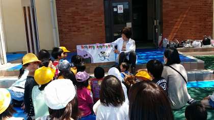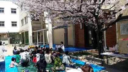 桜の下で絵本の読み聞かせ、紙芝居がありました。