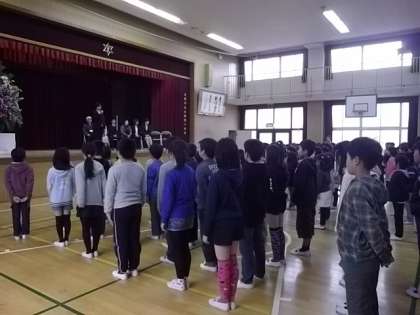 着任式では新たに6名の教職員が赴任されました。代表で6年生の児童が挨拶をしました。また2名の教職員も復帰されました。