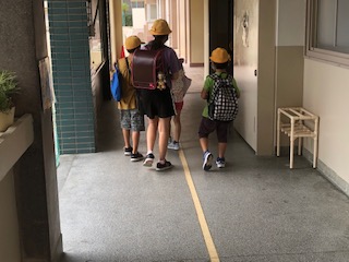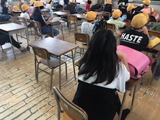 上の写真は、班長や副班長が1年生を迎えにいって地区子ども会の教室まで連れていっているところです。