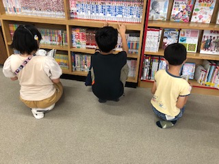 子どもたちは感染症予防対策をした本を手にして読んでいきます。