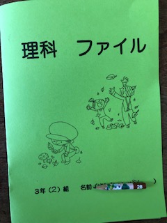 理科で観察したことを記録している理科ファイルをとじていきます。