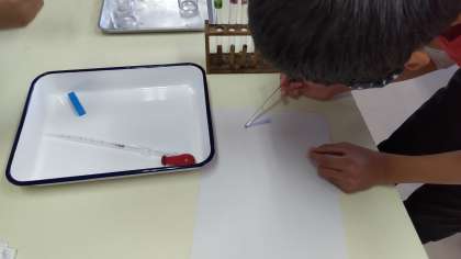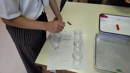 リトマス紙を使って酸性、アルカリ性、中性を調べました。