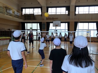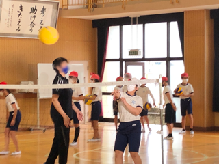 ネットを張って、ボールを打ったり、チームに分かれてゲームをしたりしました。