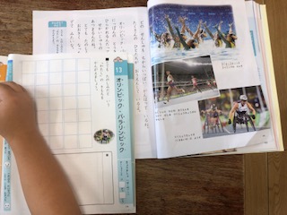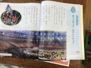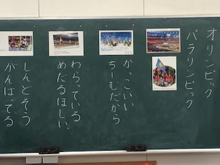 6年生がオリンピックのメダリストから夢・授業を受けている時間に、1年生は道徳でオリンピック・パラリンピックについて学んでいました。