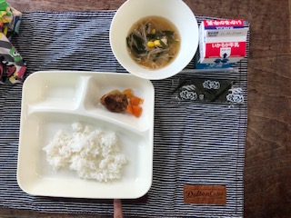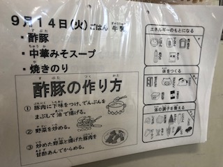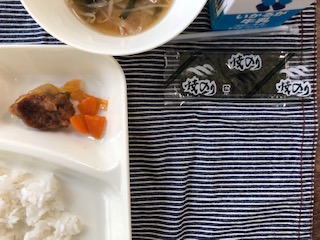 今日の給食は、酢豚でした。焼きのりもつきました。