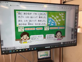 式と計算について学習しています。授業では電子黒板をふだんから活用しています。