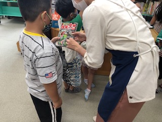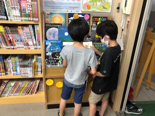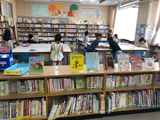 学校図書館では、学校図書館補助員の方に本の相談をしていました。(上の写真)