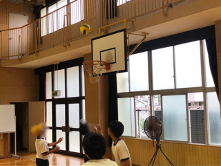チームで協力しながらバスケットボールのゲームを楽しんでいました。