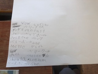 英語の音声を聞いて、聞き取れた言葉をグループでまとめています。
