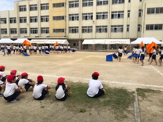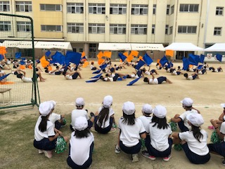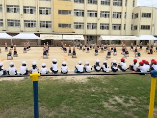 入れ替わって、5・6年生が演技をして、1・2年生(手前)が見ました。