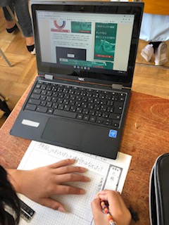 社会科で鎌倉時代などをタブレット端末を使って調べています。新聞の形でまとめています。
