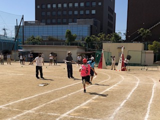 6年生が最高学年としてのリレーで懸命に走っています。