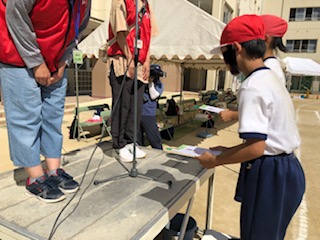 5・6年生の閉会式で運動会も幕を閉じました。参加賞が手渡されます。