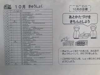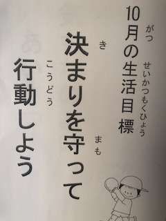 10月の生活目標と給食目標が掲示されています。