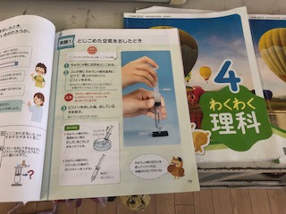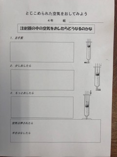 5時間目は、注射器は空気を閉じ込めて実験しました。