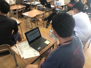 教員が放課後にICTの研修をしています。