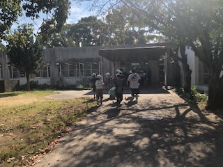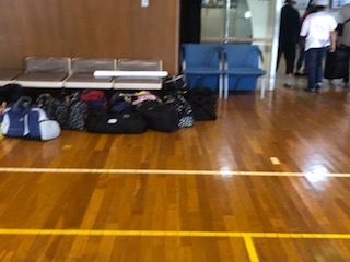 9時50分に信太山野外活動センターに到着しました。まず、大きな荷物を講堂に置いてからキャンプ場に移動します。