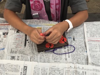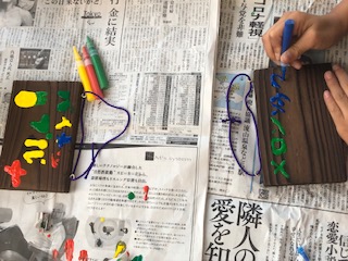 林間学習 焼き板の絵付け2
