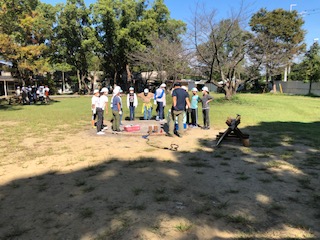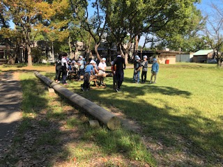 まきわり体験は3種類の割り方を体験します。3グループに分かれて体験をします。