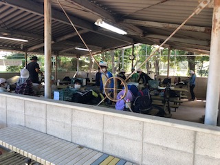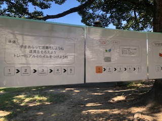 11時頃からクラスごとに分かれてピザ作りを始めました。作り方の説明も受けて、掲示も見ながら作っていきます。