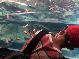 顔を水面から下げて見ていますね。