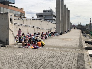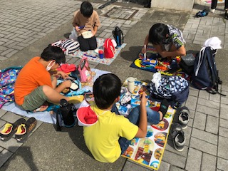 海も近い、トイレも近いところでお弁当を食べます。