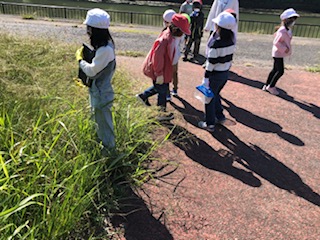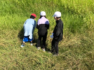 草むらにはバッタやイナゴなどの虫がたくさんいます。網でとることにもチャレンジしました。