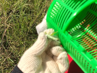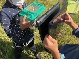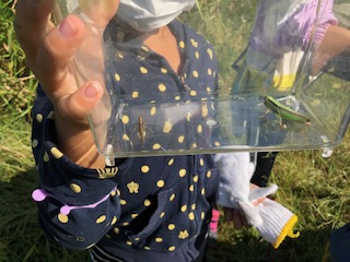 トンボやチョウ、ガなども飛んでいます。虫を見つけたら子どもたちから「おった、おった(いた)」の歓声があがりました。