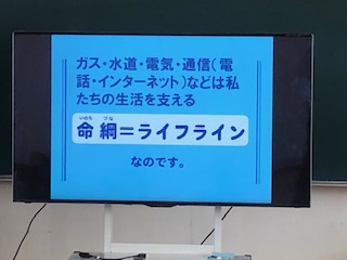 大阪ガスの方に来ていただき、防災の話をしていただきました。