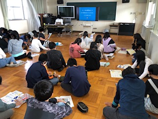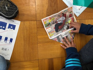 4年生と同じく大阪ガスの方から防災について学びました。防災の時に使えるスリッパをチラシを折って作っています。