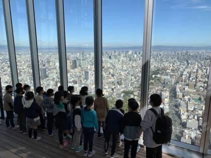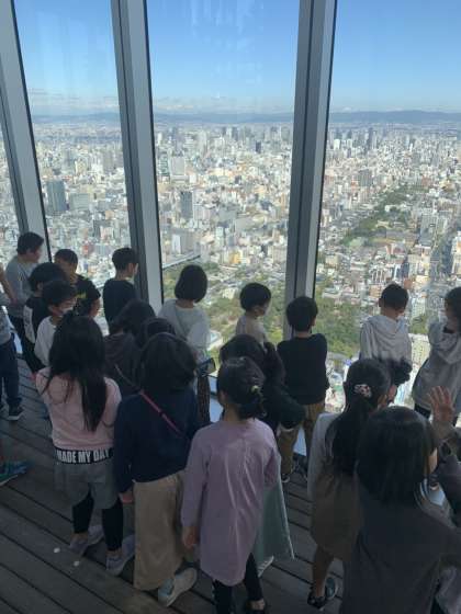 ハルカスから大阪の町を見ています。