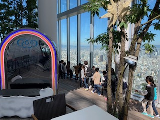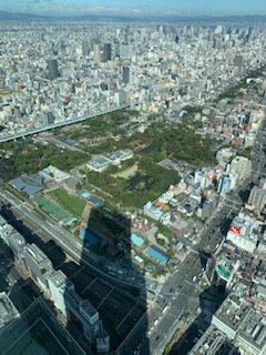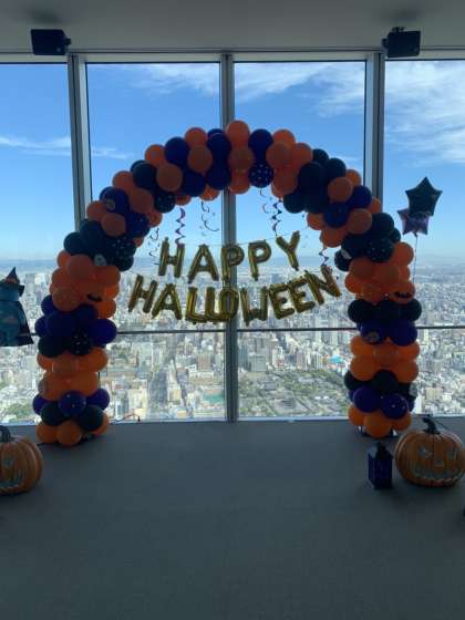 ハローウインの飾りなどがあります。天王寺公園がよく見えています。