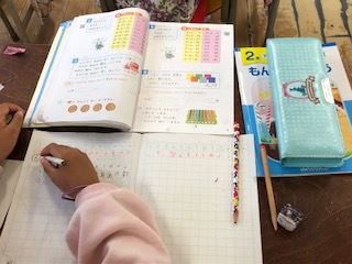 かけ算を学習しています。8の段、9の段をしっかりと学び、九九を完全に覚えていきます。
