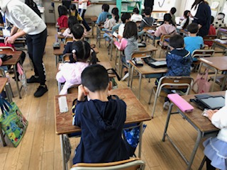パソコンを使って練習問題に取り組みデジタルドリルの活用を進めています。1年生もQRコードの読み取りから始めてデジタルドリルの使い方を学んでいます。
