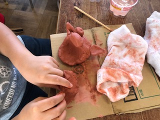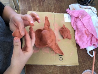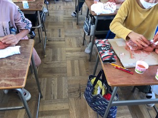5年生は粘土で作品を作っています。さて、何を作っているのでしょうか。