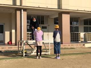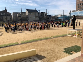 緊急事態宣言中は放送で行っていた児童朝会を今日は久しぶりに運動場でしました。