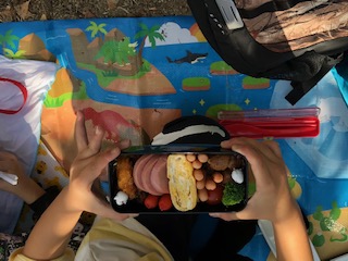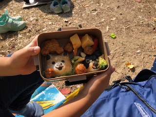 子どもたちに聞いてからお弁当を見せてもらいました。どの子もおいしいと言いながら楽しく食べていました。