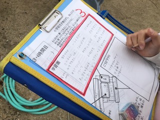 記録用紙に見つけた生き物を書いたり、カメラで撮ったりしています。記録も大事にしていますね。